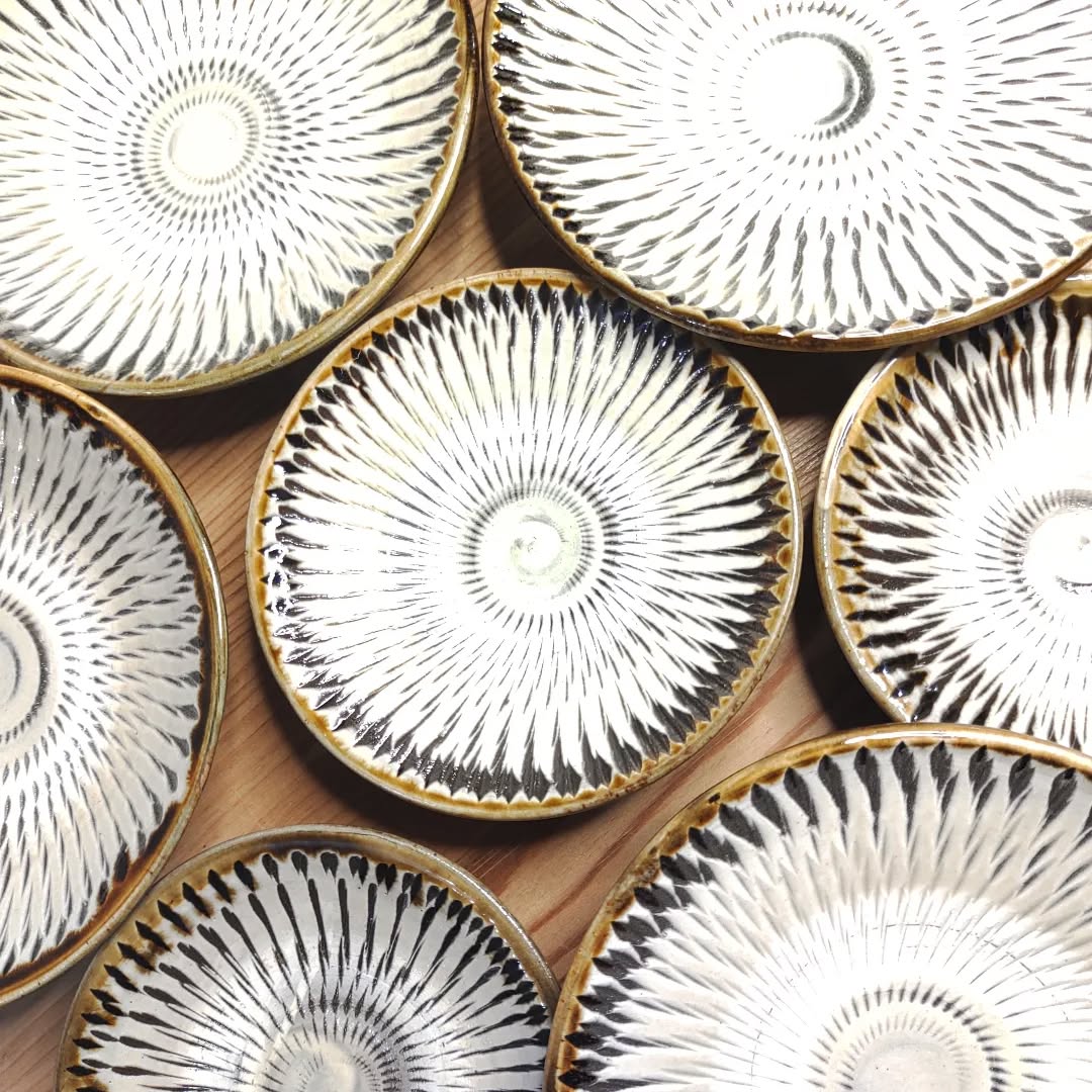 5寸フチ角鉢 飛び鉋(とびかんな)白